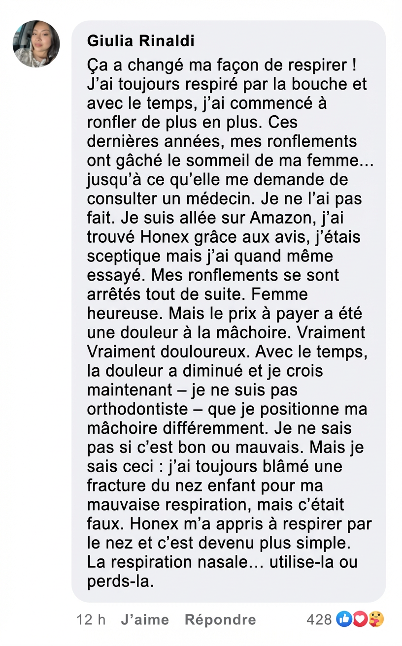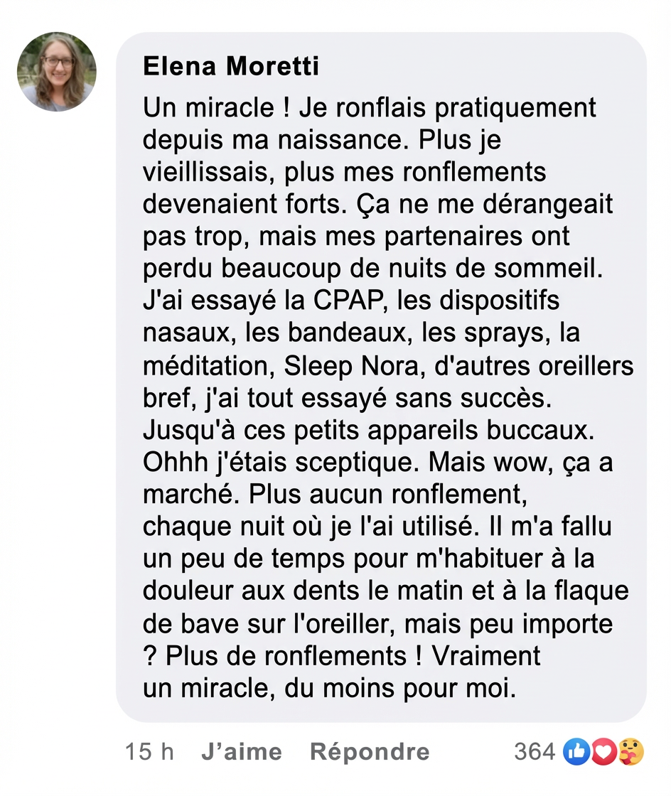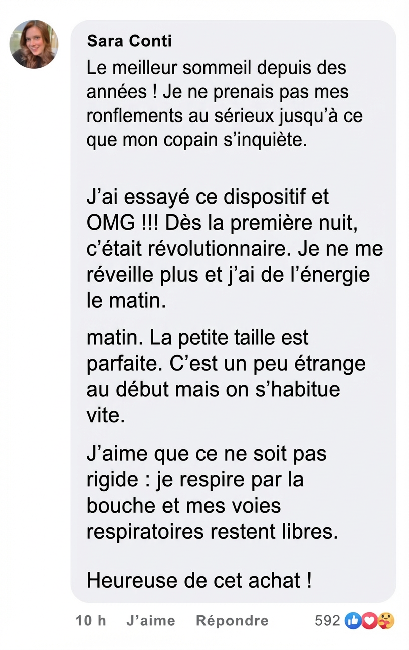 Vous n'êtes pas seul : 20 millions de français souffrent de ronflements ou partagent leur lit avec une personne qui ronfle. Après avoir essayé sans succès des bandelettes nasales, des oreillers spéciaux et des positions inhabituelles, j'ai enfin découvert un dispositif révolutionnaire.