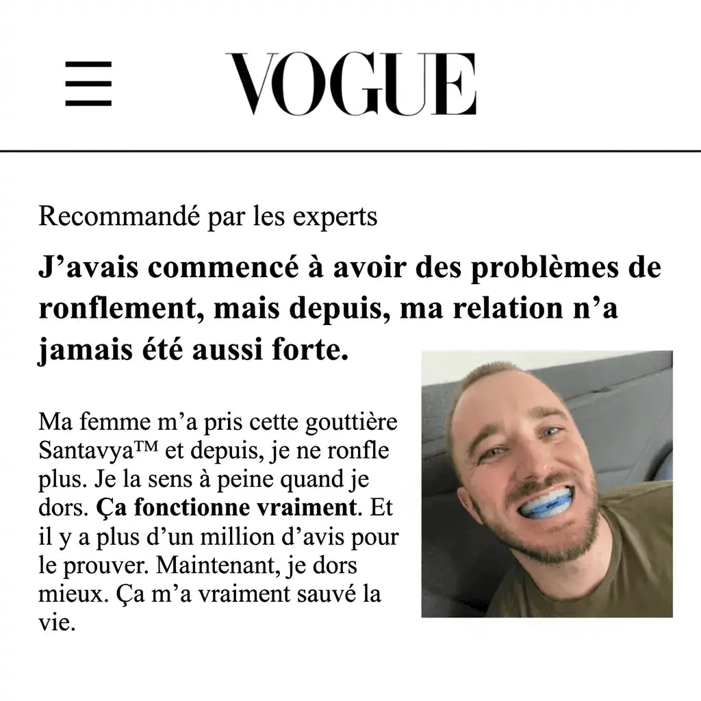 Dan avait tout essayé, même une opération coûteuse, mais rien n'y faisait. Jusqu'au jour où son dentiste lui a conseillé un appareil buccal. Il n'était pas spécifiquement conçu pour le ronflement, mais dès la première nuit, le problème a complètement disparu.