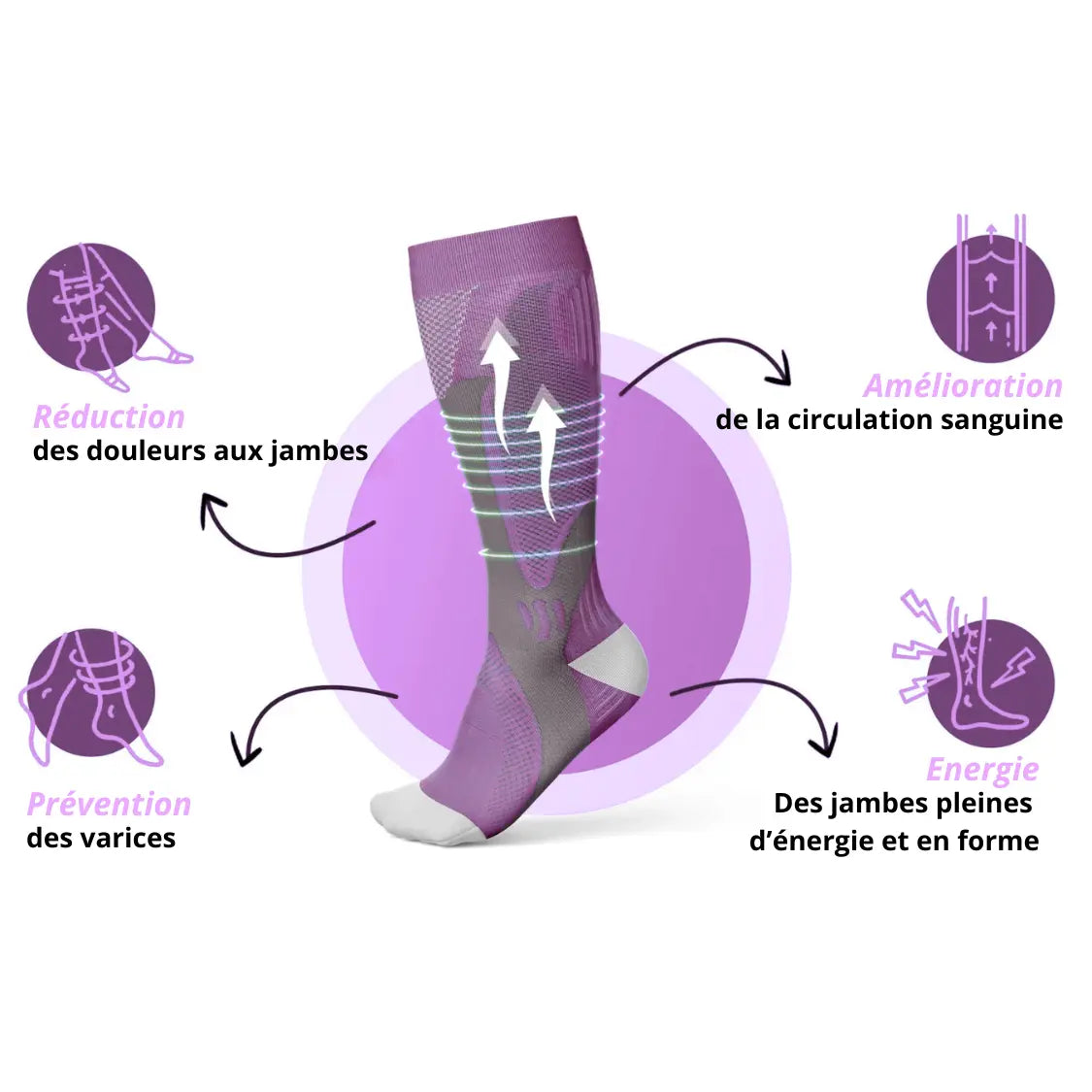 Nos bas de contention Santavya sont polyvalents et conviennent à tous. Voici quelques exemples de situations où vous pouvez les porter : - Sportifs : adaptés à presque tous les sports qui sollicitent fortement les jambes et les pieds, ils accélèrent la récupération et la régénération pendant les phases de repos et soutiennent simultanément les articulations, les muscles, les ligaments et les tendons pendant l’effort pour une meilleure performance. - Personnes exerçant des métiers répétitifs : chauffeurs routiers, infirmiers, employés de bureau, etc. La liste est loin d’être exhaustive. De manière générale, les bas de contention sont recommandés pour les professions qui exigent de rester debout ou assis pendant de longues périodes. - Voyageurs - Femmes enceintes